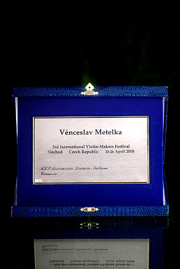 Main prize, the 3rd International Violin-Making Festival of Vecenslav Metelka in Nachod (2008)