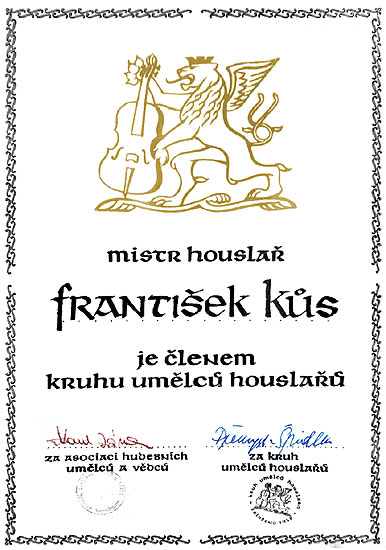 I am really happy that during Václav Hudeček's violin lessons in 2004 I acquired an instrument made by František Kůs. Although this violin is now only three years old, its sound timbres could compete with those of the old Italian instruments. I love the honey-coloured varnish, as well as the perfect workmanship. František, may more and more musicians be that happy to have your violin!